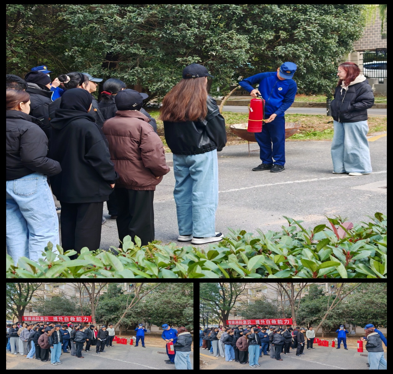 为践行“全民消防 生命至上—安全用火用电”消防宣传月主题理念,确保我校消防安全培训工作全覆盖。11月20日下午,保卫处对国际教育学院留学生约50余人进行消防安全培训。培训中,该院学生踊跃参与培训科目实操并在现场分享心得体会。通过培训进一步强化了参训留学生消防安全意识,提高了消防安全技能。